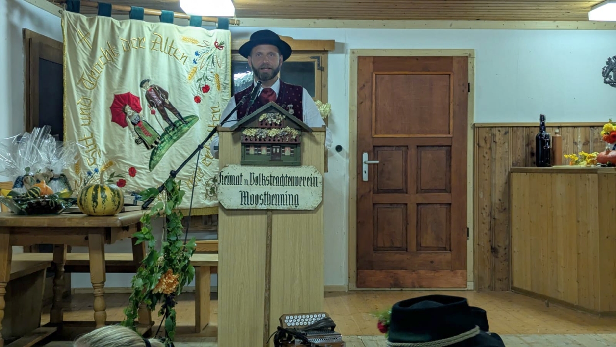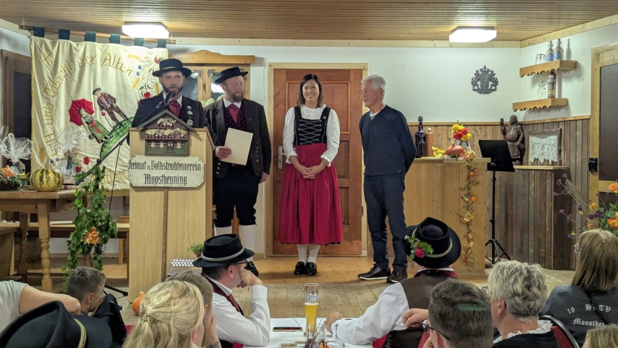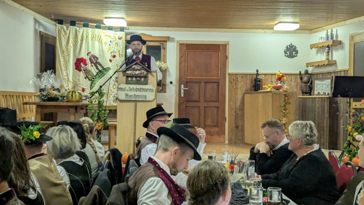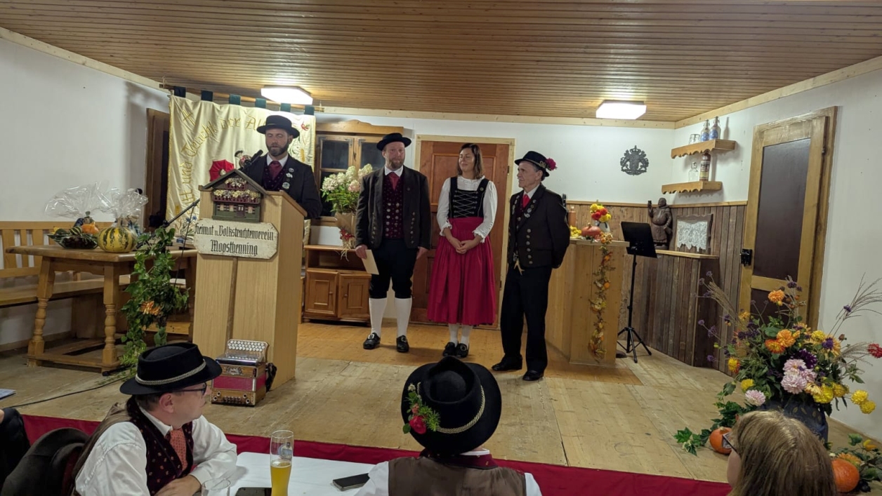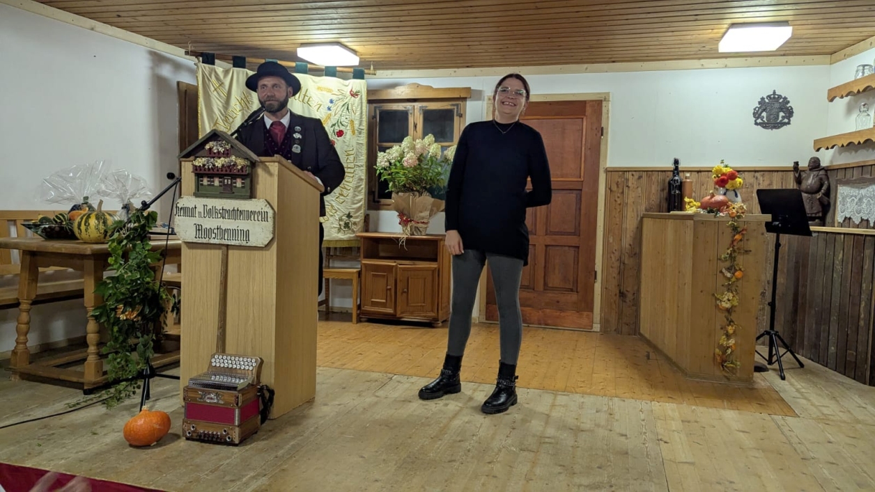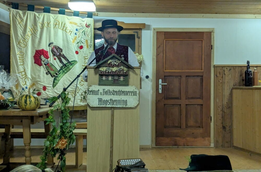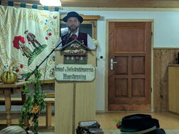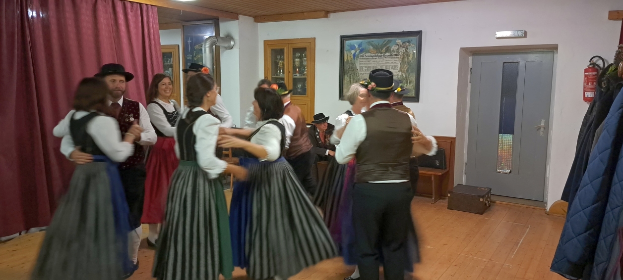 Aufgelockert wurde der Abend durch die durch den Regen im Freien ausgefallenen Tänze (Bayerische Mazurka und Zigeunerpolka) und der junge Tobias Gehwolf zeigte auf seiner Diatonischen sein musikalisches Können.