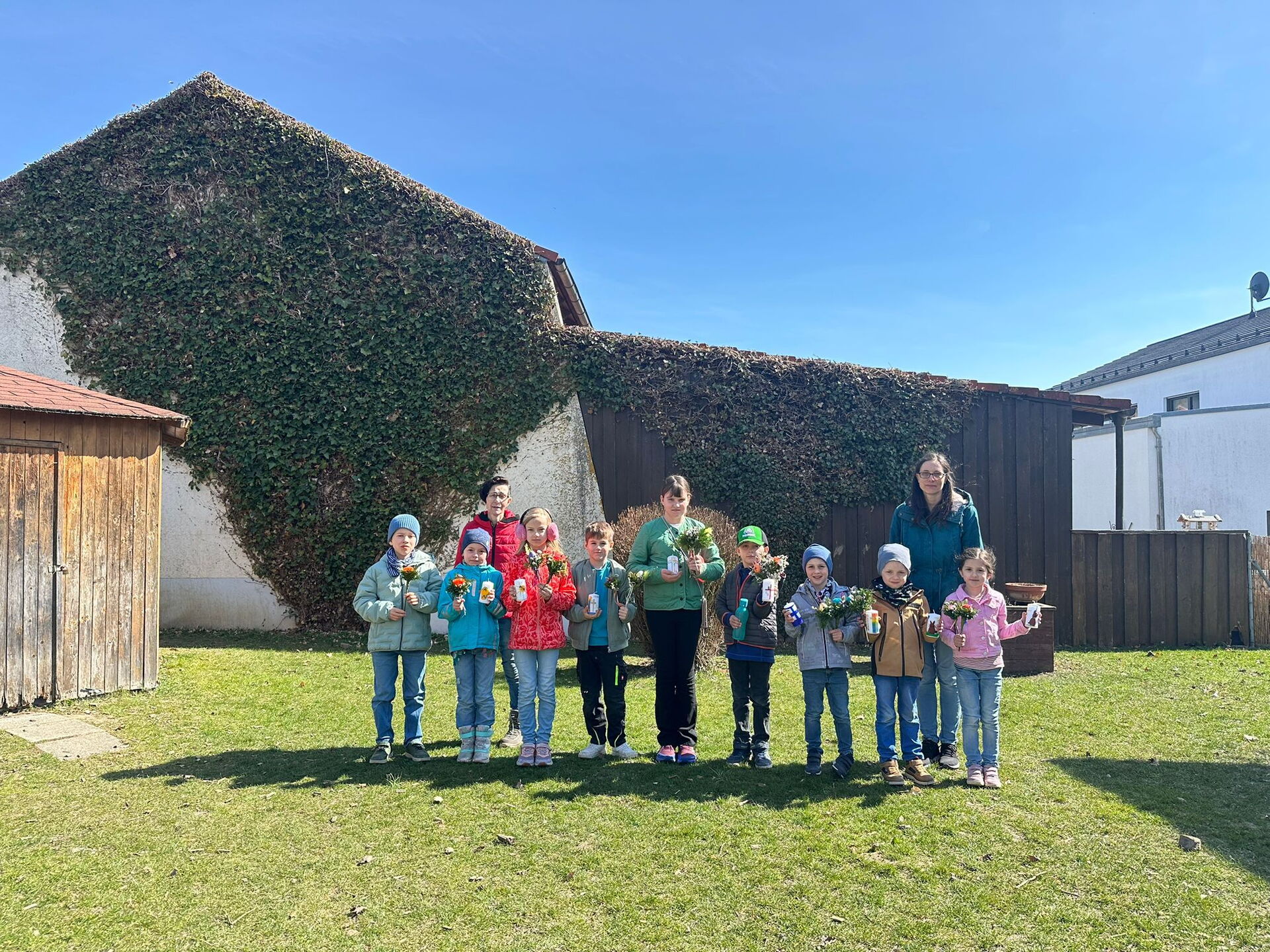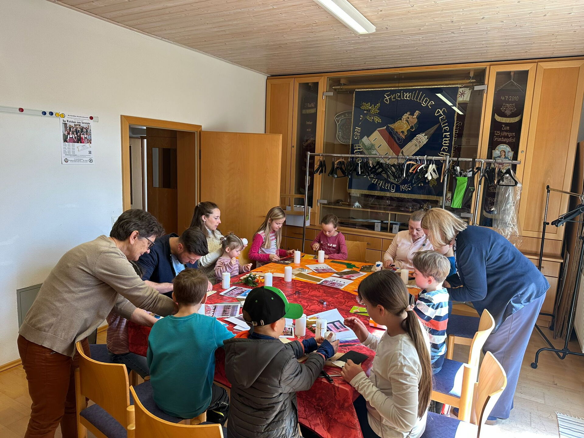 Die ehemalige zweite Vorständin Gabi Schaffner und Pastoralreferentin Nina Fuchs mit ihren bewährten Helferinnen hatten für die Kinder aus der Gemeinde am Samstag, den 20. März, wieder einen Kurs zum Gestalten von Osterkerzen und Binden von Palmbuschen für den Palmsonntag angeboten. Leider konnten von den ursprünglich angemeldeten 20 Kindern wegen einer plötzlichen Terminüberschneidung nur elf teilnehmen.
